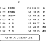 年末年始休業のお知らせ